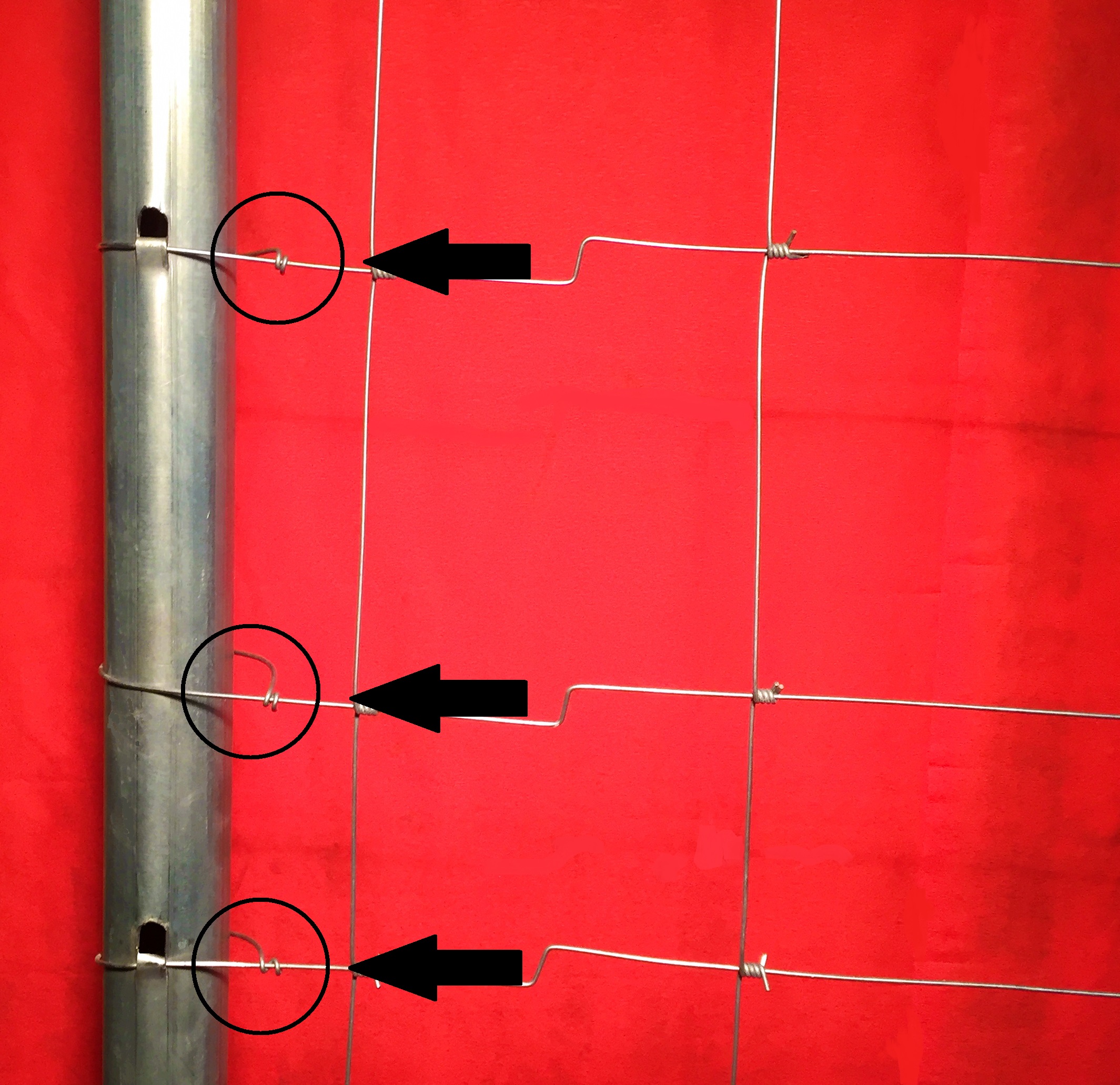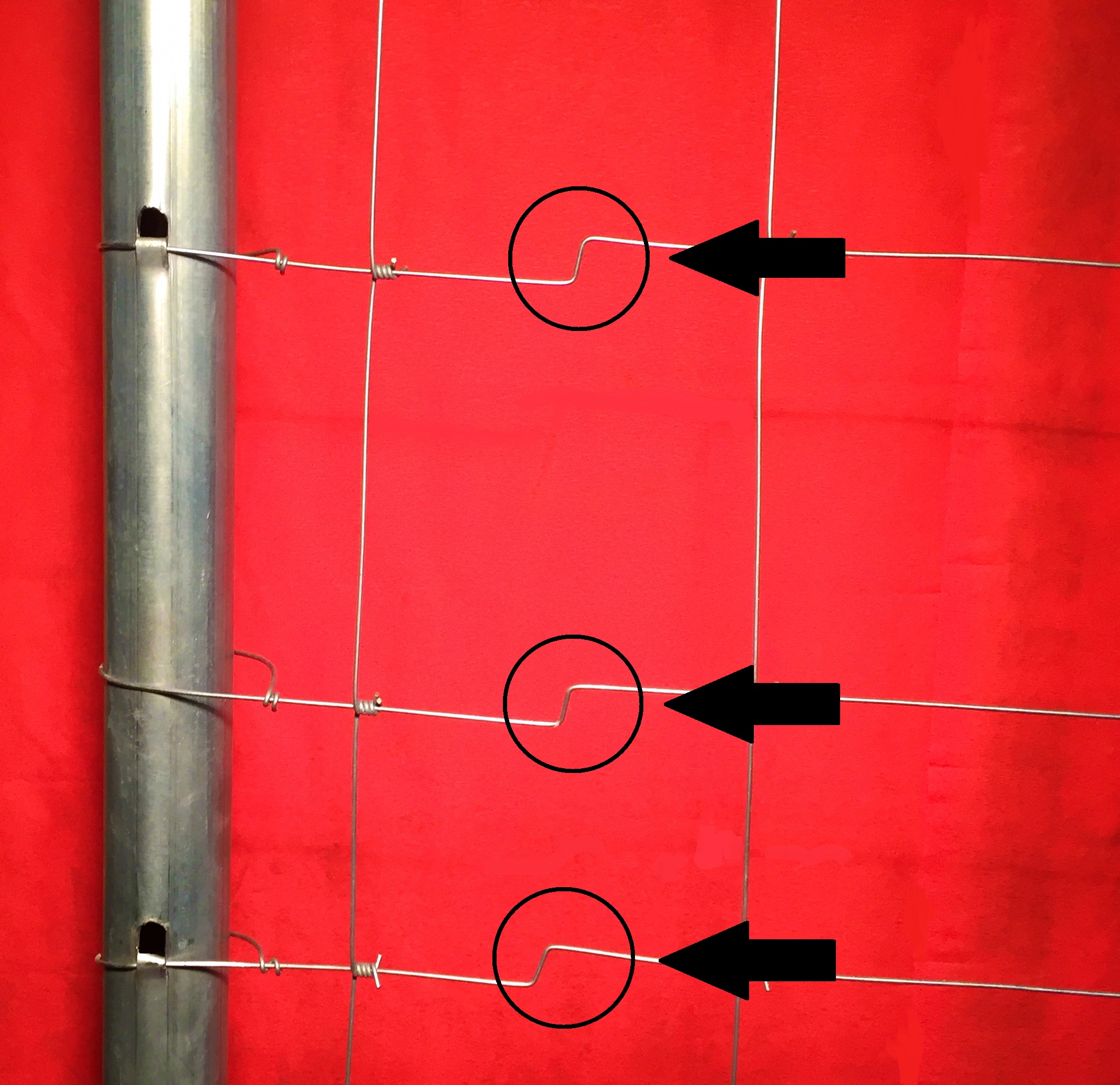 - С помощью пассатижей произвести финальную натяжку сетки путем изгиба горизонтальных проволок (см. фото).